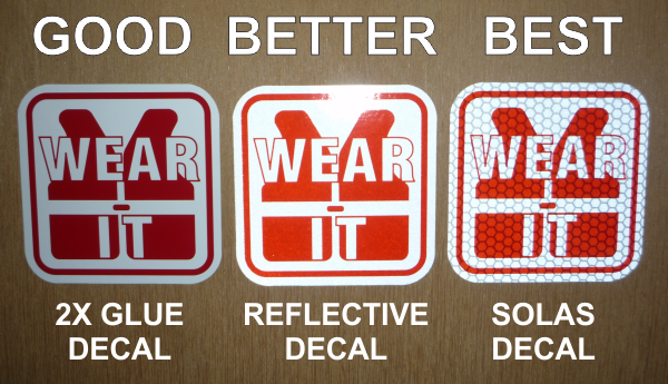 If SOLAS is not necessary, we make less expensive reflective and non-reflective decals: