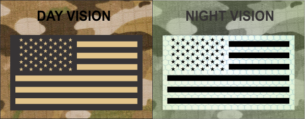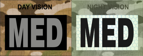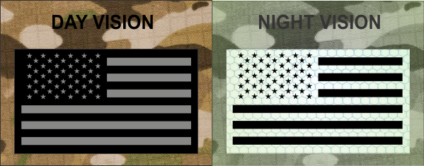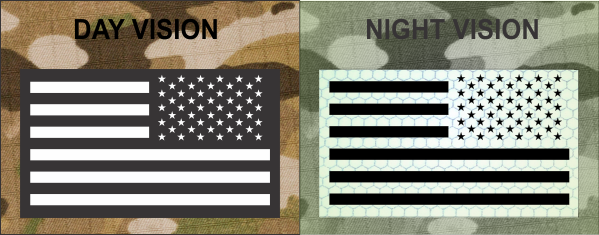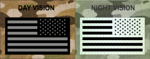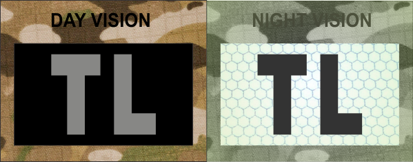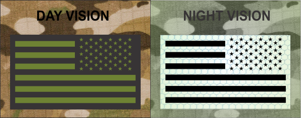 | Solas Decals 3.5" x 2" look normal in daytime, but glow when viewed with Night Vision. |